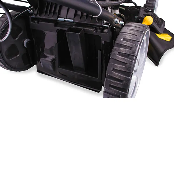 Рукоятку можно регулировать по высоте для удобства пользователя. Складная конструкция рукоятки позволяет без проблем транспортировать газонокосилку и экономит место при хранении.